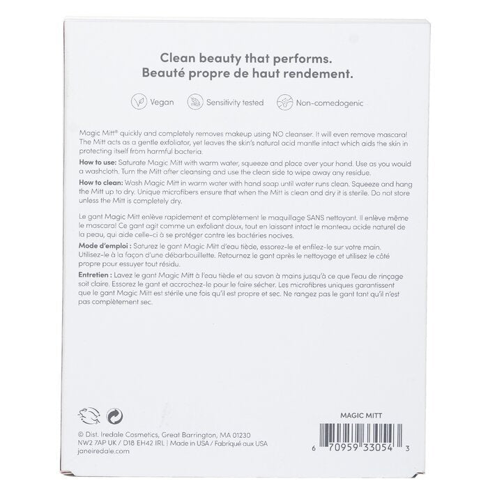 Jane Iredale Magic Mitt 1pc is a convenient makeup-removal mitt that saves time while protecting your skin. It’s designed for anyone who wants a quick, cleanser-free cleansing experience that maintains the skin's natural balance.